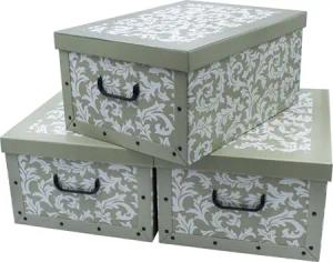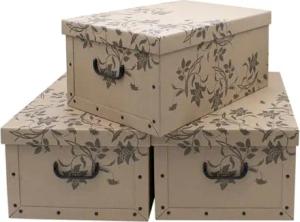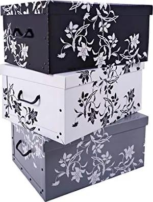 3er Set Aufbewahrungsbox mit Deckel je 51 x 37 cm - Blumenmuster - Stapelbox aus Pappe mit Griffen 45 Liter - Organizer Storage Box Allzweck Spielzeug Kiste Geschenk Karton Barock stapelbar