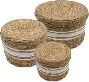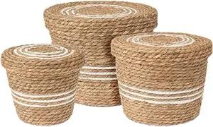 Seegras Aufbewahrungskorb natur 3er Set - 30 cm 25 cm und 21 cm - Boho Korbset geflochten mit Deckel - Naturfaser Mehrzweck Rattan Körbchen