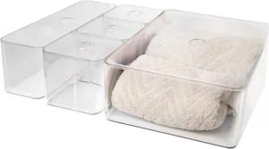 Badezimmer Organizer transparent mit Deckel - 5er Set - Aufbewahrungs Boxen aus Kunststoff in 3 Größen - Mehrzweck Ordnungssystem Kästchen für Utensilien aus Küche Büro Schlafzimmer