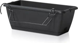 Balkon Blumenkasten mit Halterung und Bewässerungssystem - 1 Stück in 40 cm - Kunststoff Geländer Pflanztopf in anthrazit - Blumentopf Pflanzkasten zum Einhängen mit Wasserablauf