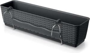 Balkon Blumenkasten mit Halterung und Bewässerungssystem - 50 x 15 cm - Kunststoff Geländer Pflanztopf in anthrazit - Pflanzkasten Blumentopf zum Einhängen mit Bewässerungsboden
