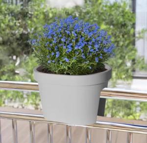 Balkon Geländer Blumentopf in grau - 40x26 cm - Pflanztopf Blumenkübel Geländertopf oval