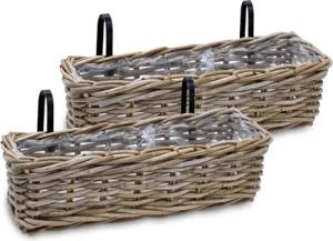 Balkonkasten Rattan Natur 44 x 17 cm - 2er Set - Blumen Weidenkorb mit Halterung - Balkon Garten Blumenkasten Pflanztopf Blumenkorb zum Einhängen an Geländer