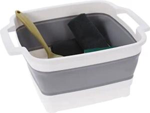 Camping Spülwanne faltbar - 10 Liter - Tragbare Geschirr Spülschüssel inklusive Zubehör - Spülset Faltschüssel Waschbecken Korb für Ausflug Festival Picknick