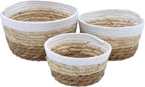 Deko Körbchen rund 3er Set aus Seegras - 21/18 / 15 cm - Allzweck Korbset klein aus Naturfasern - Boho Aufbewahrungskorb Übertopf Rattan Korb geflochten Organizer für Badezimmer Schlafzimmer
