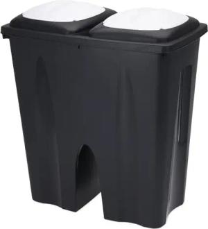Duo Mülleimer 50 Liter schwarz mit Push Deckel in weiß - 2x 25 L - Kunststoff Doppel Abfalleimer recycelbar mit Klappverschluss - Mülltrenner Abfallsammler Müllbehälter Doppeleimer Duo Bin
