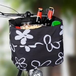 Fahrradtasche schwarz mit Blumen für Lenker - 30 x 25 cm - Einkaufstasche für Fahrräder zur Festmontage - Fahrradkorb Lenkertasche Einkaufskorb Transportkorb Metallkorb Tasche für Fahrrad engmaschig