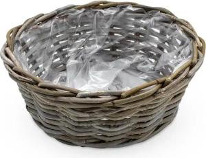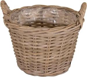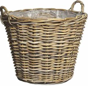 Rattan Pflanztopf mit Kunststoff Einsatz - 33 x 24 cm - Garten Deko Blumenkorb Shabby grau - Drypot Weide Flechtkorb Pflanzen Behälter Blumen Kübel