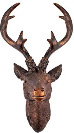 Hirschgeweih 10 Ender - Wand Deko in Bronze Optik 30x15 cm - Hirschkopf Skulptur Jagd Geweih