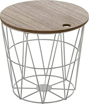 Holz Blumenhocker mit Metall Aufbewahrungskorb - Farbe: weiß - Pflanzenhocker Blumentisch Deko Hocker Holzhocker klein