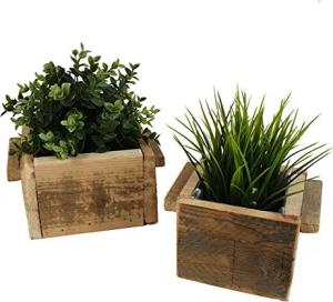 Holz Pflanzkasten im 2er Set - 18x18 und 14x14 cm - Deko Blumenkasten Pflanztopf Blumentopf Kräutertopf