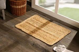 Jute Teppich geflochten Natur - rechteckig / 60 x 40 cm - Kurzflor Läufer im Ethno-Style - Niedrigflor Naturfaser Matte recycelbar wasserabweisend antistatisch farbecht