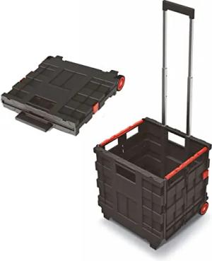 Kunststoff Einkaufstrolley klappbar mit Rädern - 35 L - Transportbox fahrbar mit Teleskopgriff - Einkaufskorb rollbar Einkaufswagen klappbar Transport Einkauf Box Wagen Korb