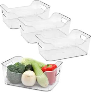 Kunststoff Kühlschrank Organizer 25 x 18 cm transparent - 4er Set - Aufbewahrungsbox für die Küche lebensmittelecht - Lebensmittel Sortierbox Ordnungskorb Obst Gemüse Schale durchsichtig