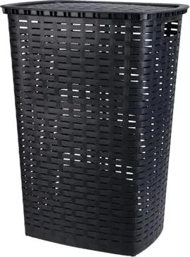 Kunststoff Wäschekorb in Rattan Optik 53 Liter - anthrazit - Wäschebox mit Deckel und Tragegriffen - Wäschetruhe Wäschesammler Wäschetonne mit Griff feuchtraumbeständig