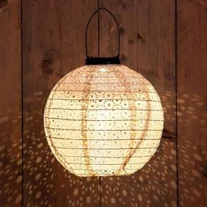 LED Solar Textil Lampion rund creme - 25 cm - Garten Deko Beleuchtung warm weiß - Solarleuchte Laterne Leuchtkugel Dekoleuchte Partylicht für Außen wetterfest