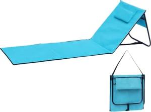 Liegematte faltbar mit Verstellbarer Rückenlehne - hellblau - Strandliege 152 x 51 cm faltbar mit Tragegurt - Garten Liege Sonnenliege Camping Picknick Reise Urlaub mit Bodenmatte Staufach