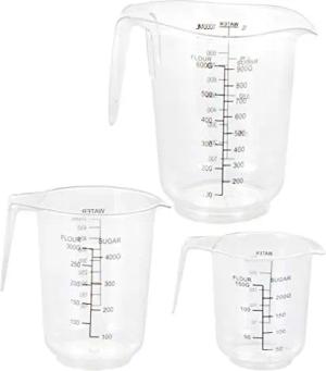 Messbecher Set aus Kunststoff - 3-teilig - Messkanne in 250 ml, 500 ml und 1000 ml - in einander stapelbar und spülmaschinenfest