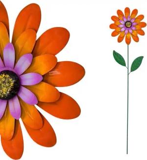Metall Gartenstecker Blume orange - 90 x 25 cm - Gartendeko Blumenstecker bunt - Garten Deko Beetstecker Gartenstecker Gartenstab Metallblume Pflanzenstecker Blumenstab Frühlingsdeko