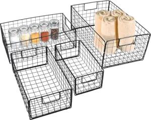 Metall Aufbewahrungskorb schwarz je 2x 25/21 / 15 cm - 6er Set - Regal Gitterkorb ineinander Stapelbar - Drahtkorb Metallkorb Korb für Regal Schrank Küche Büro