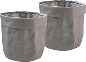Papier Blumentopf 32 x 30 cm - anthrazit / 2er Set - Kraftpapier Übertopf - Deko Blumen Pflanzen Tasche Beutel Tüte Topf faltbar