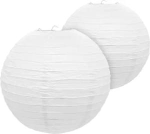 Papier Lampion in weiß zum Hängen - 2er Set in 25 cm - Deko Papierlaterne rund - Lampenschirm Papierlampe gerippt Deko für Garten Party Hochzeit Geburtstag Bamboo Style