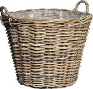 Rattan Pflanzkorb natur mit Henkeln - 42 cm - Weide Blumenkorb mit Folie - Garten Deko Flechtkorb Gartenkorb Weidenkorb Übertopf geflochten