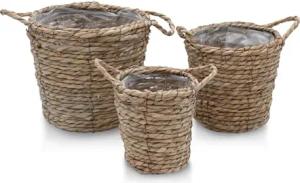 Seegras Pflanzkorb 3er Set Natur - 25/20 / 15 cm - Pflanztopf mit Folie ausgekleidet - Deko Blumenkorb Blumentopf Flechtkorb Korbset mit Henkel für Zimmerpflanzen