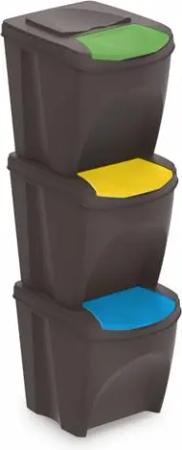 Sortibox Mülleimer mit Deckel 25 L - 3er Set/anthrazit - Stapelbares Müll Trennsystem - Abfall Sortierer Trenner Sytem Trennkörbe stapelbar mit Klappe