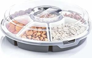 Transport Servierset mit 6 Schalen - Ø 33 cm - Runde Snack und Dip Transportbox mit Deckel - Snackteller Snackbox Dip Tapas Schüsseln Servier Teller spülmaschinenfest