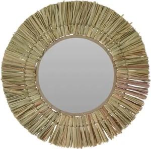 Wandspiegel rund mit Gras Rahmen - Ø 41 cm - Hängespiegel mit dekorativer Umrandung - Boho Wanddeko Flurspiegel Deko Spiegel für Bad Flur Wohnzimmer