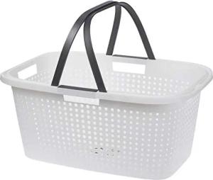 Wäschekorb aus Kunststoff 60 x 39 cm - weiß - Tragekorb mit klappbaren Griffen - Wäschebox Wäschesammler Wäschewanne Einkaufskorb