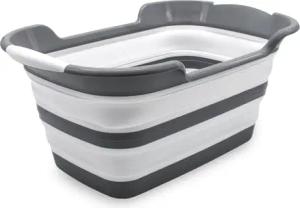 Wäschekorb faltbar weiß 60 x 40 cm - 27 L - Silikon Wäschewanne mit integrierten Griffen - Pop Up Mehrzweck Wanne Wäsche Sammler Korb klappbar für Haushalt Einkauf Camping