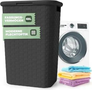 Wäschekorb mit Deckel Rattan - Wäschebox in Flechtoptik 65 L - Wäschesammler Kunststoff mit seitl. Griffen - Platzsparende Wäschesammelbox für Badezimmer & Wohnräume - Wäschetonne anthrazit