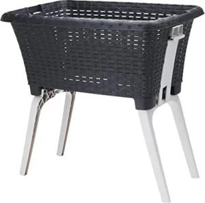 Wäschekorb mit klappbaren Füßen 60 x 40 cm - schwarz - Stand Wäschebox mit Beinen auf Knopfdruck ausgeklappt - Wäsche Sammler Box Korb stehend und recycelbar