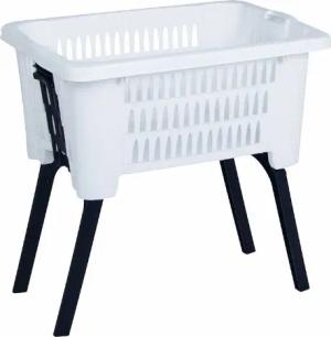 Wäschekorb mit klappbaren Füßen 60 x 40 cm - weiß - Stand Wäschebox mit Beinen auf Knopfdruck ausgeklappt - Wäsche Sammler Box Korb stehend