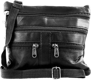 Unisex – Schultertasche Echt Leder Tasche 21x19x1 cm 3900009 (Schwarz)