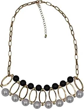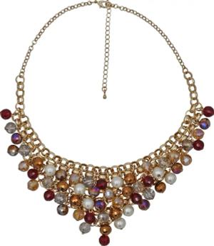 Modeschmuck Collierkette Metall gold farben Perlen Zierde topaz/rot/weiß/braun