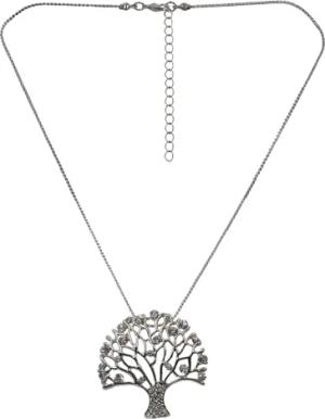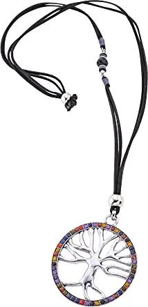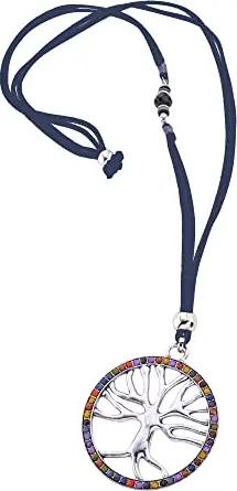 Modeschmuck Damen Kette Lebensbaum mit bunter Zierde an blauem Veloursband Metall 84cm Glänzend Glasstein weiß 445040008