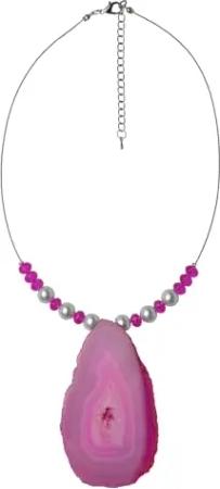 Modeschmuck Damen Collier Metall 58cm Glänzend Achat pink 445050121