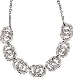 Modeschmuck Damen Collierkette Metall 52 Gehämmert Glasstein Silbergrau 445050005