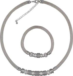 Modeschmuck Damen Set Kette Armband Metall 55,0cm Diamantschnitt Silbergrau 445000030