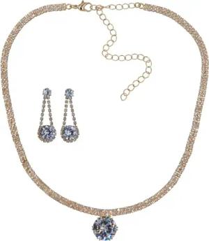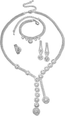 Modeschmuck Damen Set Metall 47cm Glänzend Glasstein weiß 445000035