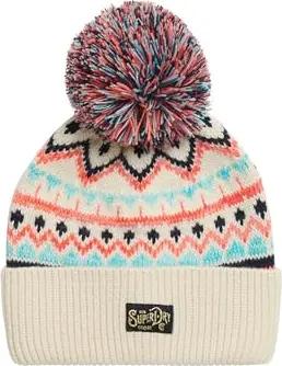 Damen Gemusterte Beaniemütze aus Strickgewebe Insel Ecru Mehrfarbig 1SIZE