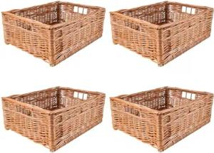4 x Weidenkorb Aufbewahrungskorb | 40 x 30 x 15 cm (+/- 2 cm) | Handgeflochten, Haltbar | Korb Geflochten Naturkorb mit Griffen Aufbewahrung | Für Regal, Spielzeug, Werkzeug, Bad Korb