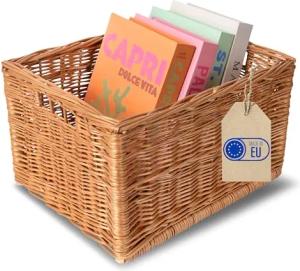 Große Weidenkorb Aufbewahrungskorb | 40 x 30 x 24 cm (+/- 2 cm) | Handgeflochten, Haltbar | Korb Geflochten Naturkorb mit Griffen Aufbewahrung | Für Regal, Spielzeug, Werkzeuge, Bad korb