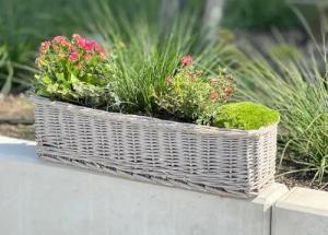Rattan Pflanzkorb Rustikal rund, groß, grau, Outdoor Blumentopf, Pflanzkübel, Pflanztopf für Draußen, Blumenkübel, Blumenkasten, Pflanzkasten (Pflanzkasten rechteckig 60 cm)