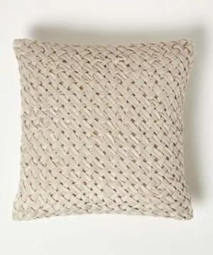 Sofia Samt-Kissen geflochten cremeweiß, Dekokissen 45x45 cm, Flechtoptik Zierkissen grau mit Füllung