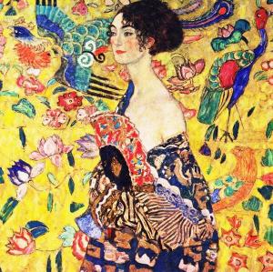 Poster / Leinwandbild - Gustav Klimt: Frau mit Fächer