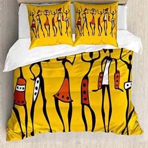 Afrika Bettbezug Set, Flüchtige Graphical Dancer, Milbensicher Allergiker geeignet mit Kissenbezügen, 200 cm x 200 cm - 80 x 80 cm, Senf und orange